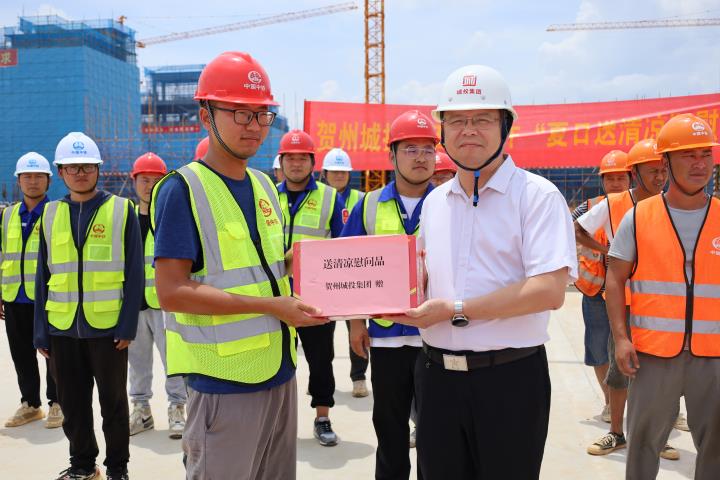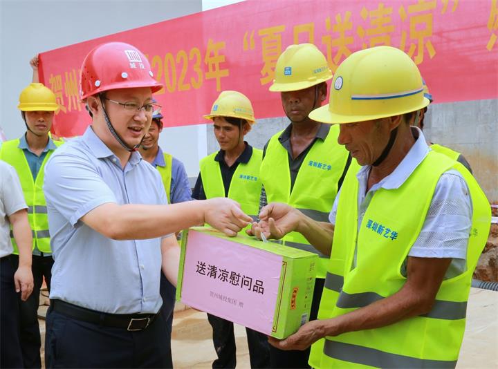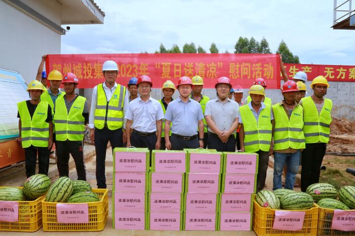 為持續做好夏季防暑降溫工作,關心關愛在高溫天氣中堅守崗位、辛勤勞動的施工人員,近日,城投集團黨委書記、董事長黃俊,集團黨委副書記、總經理常瑜分別到賀州第三高級中學項目、賀州市平桂區域污水處理設施建設項目開展2023年“夏日送清涼”慰問活動。