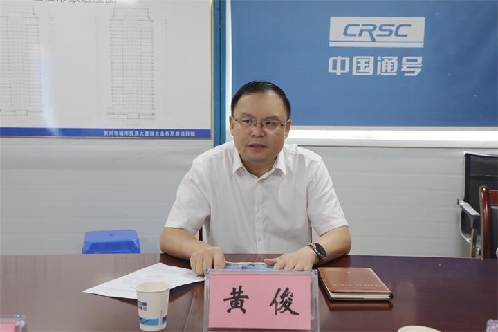 調研中,黃俊認真聽取了城投大廈項目建設、銷售、融資化債等情況匯報,詳細了解當前項目在推進及銷售等方面存在的問題,并提出指導性意見。黃俊指出,城投大廈項目是賀州市重點項目,是推進集團市場化轉型的重要項目,當前項目推進處于關鍵環節,各參建單位要進一步提高政治站位,將城投大廈打造成賀州市地標性建筑。