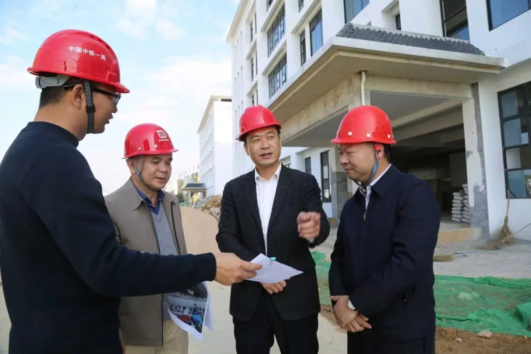 在賀州職業實訓基地項目現場,楊喜詳細聽取項目建設整體情況匯報,重點關切剩余工程量推進進度,對項目推進中存在的堵點難點問題進行現場協調。
